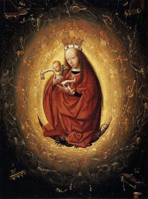 Por volta de 1348 espalhou-se um tipo de escultura mariana chamada Madonna que pisa a lua crescente (Mondsichel-Madonna), onde a representação da mulher do Apocalipse dispensa o uso do símbolo da lua (por exemplo, na escultura de Trier, 1480.).
