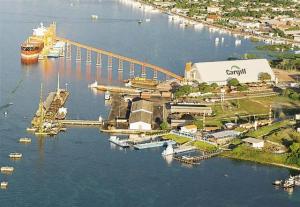 ACESSO FLUVIAL - O Rio Tapajós forma um canal de acesso natural, desde a sua foz no rio Amazonas até o cais do porto, numa distância de 3,1 km, com largura de 1,8 km e profundidade de 15 m.