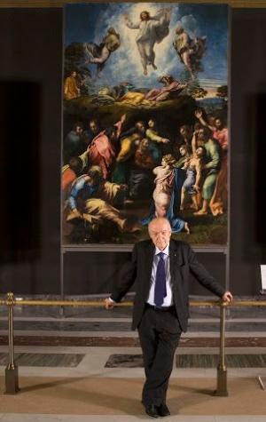 O Prof. Antonio Paolucci diante da “Transfiguração” de Rafael