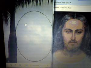 Um dia, enquanto esperava minha filha sair da aula de inglês (na época moravamos em Belo Horizonte/MG), após fazer quase 2h de Adoração e ter acabado de rezar o terço em meu carro, em um momento de desespero, olhei para o Céu e disse a Jesus que, caso as coisas fossem melhorar, que ELE ME MOSTRASSE A SUA SANTA FACE! Logo em seguida apareceu este rosto entre as nuvens.