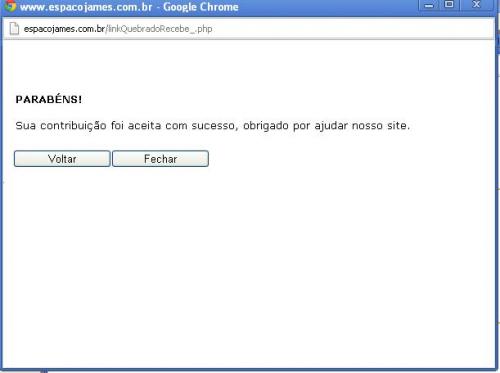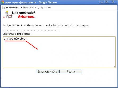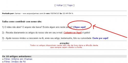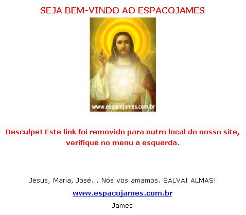 O Espacojames é um site gigante, possui centenas de links que humanamente é impossível checar se todos estão funcionando perfeitamente. Desenvolvo e administro o site sozinho, por isso, peço a colaboração de nossos irmãos que acessam diariamente o Espacojames e o Espacomaria que nos ajude informando erros de páginas ou links quebrados. Desta forma, evitaremos alguns problemas e todos terão acesso às informações.