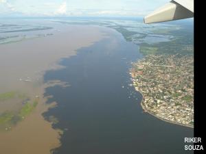 Em frente a cidade de Santarém existe um lindo espetáculo, o encontro das águas do Rio Tapajós (Azul claro) e o Rio Amazonas (Marrom, barrento). O Rio amazonas tem este aspecto barrento devido a sua grande força, e por onde passa sai cavando e derrubando as árvores da beira do rio.